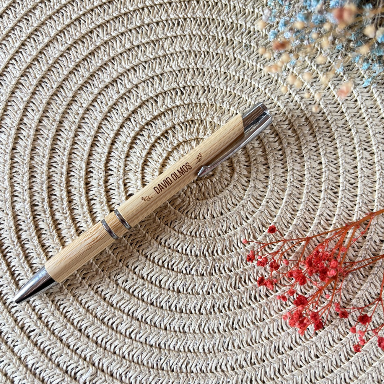 Estos bolígrafos grabados a láser permiten su personalización con nombres, fechas, frases emotivas o divertidas para tus testigos o seres queridos.
