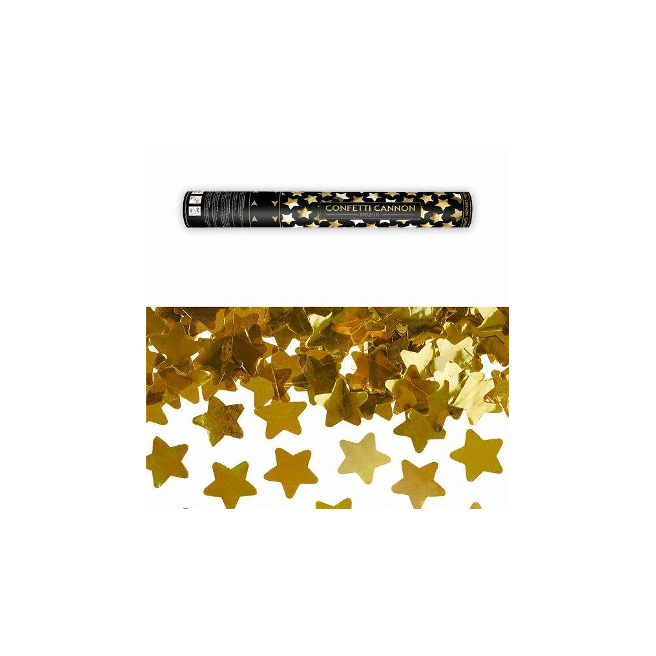 • Cañón de confeti de estrellas en oro 60cm de longitud.